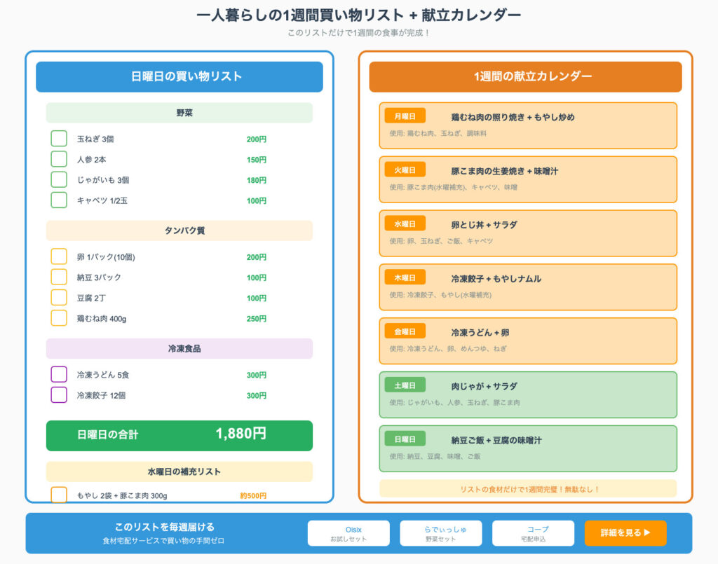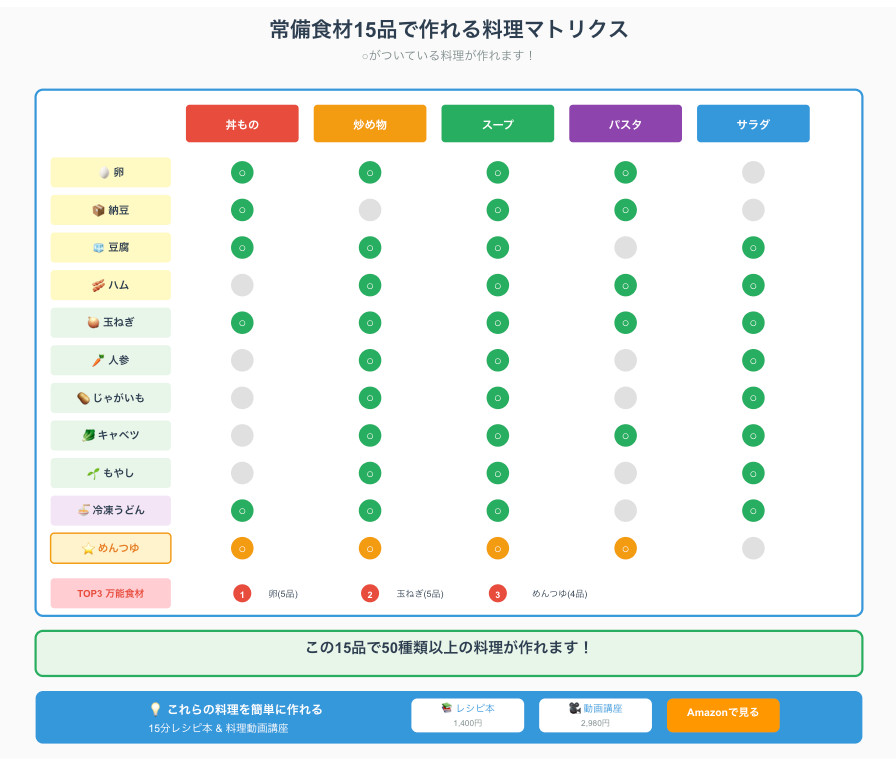 「あれもこれも」と買い込むより、使い回せる食材を確実にストックする方が、自炊は圧倒的にラクになります